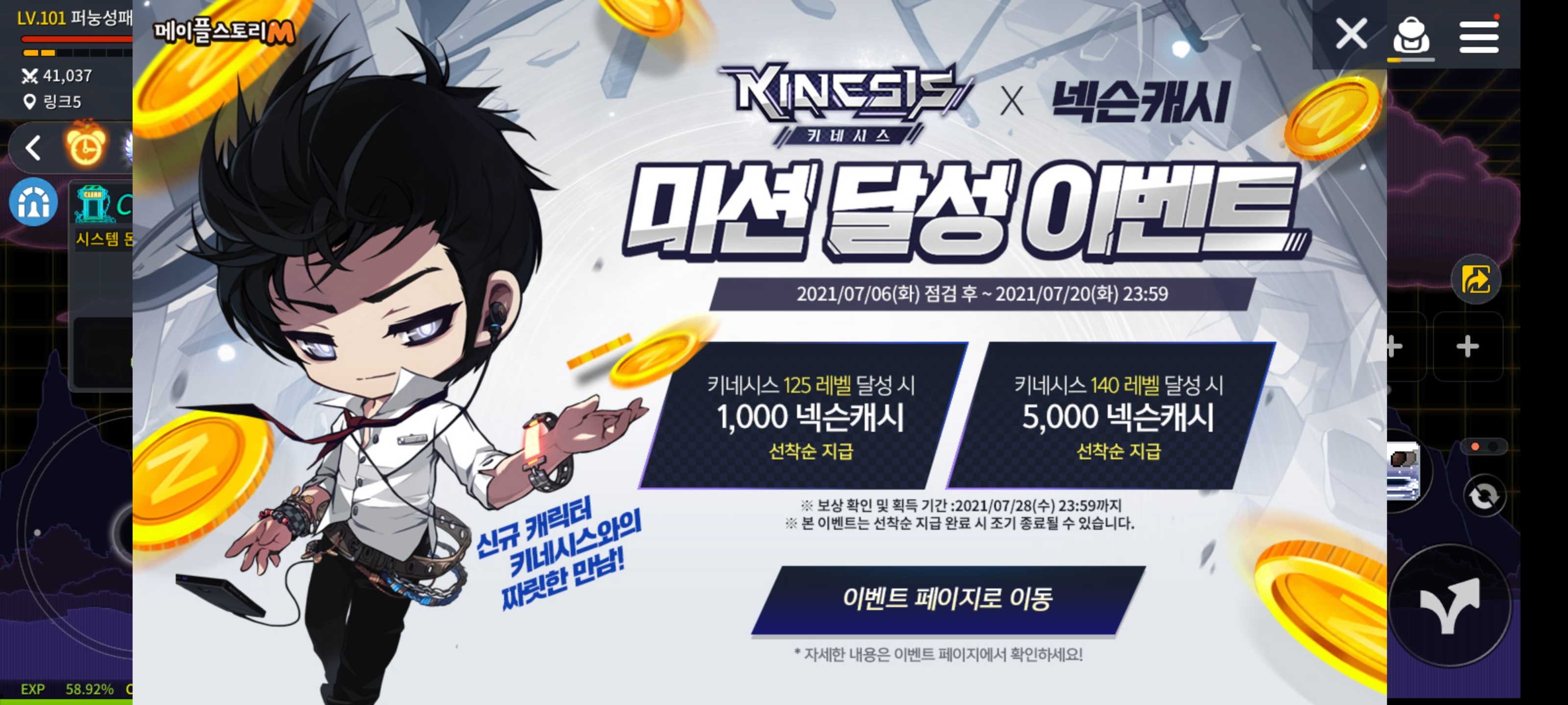 또한 키네시스와 넥슨캐시 이벤트도 진행하고 있습니다.