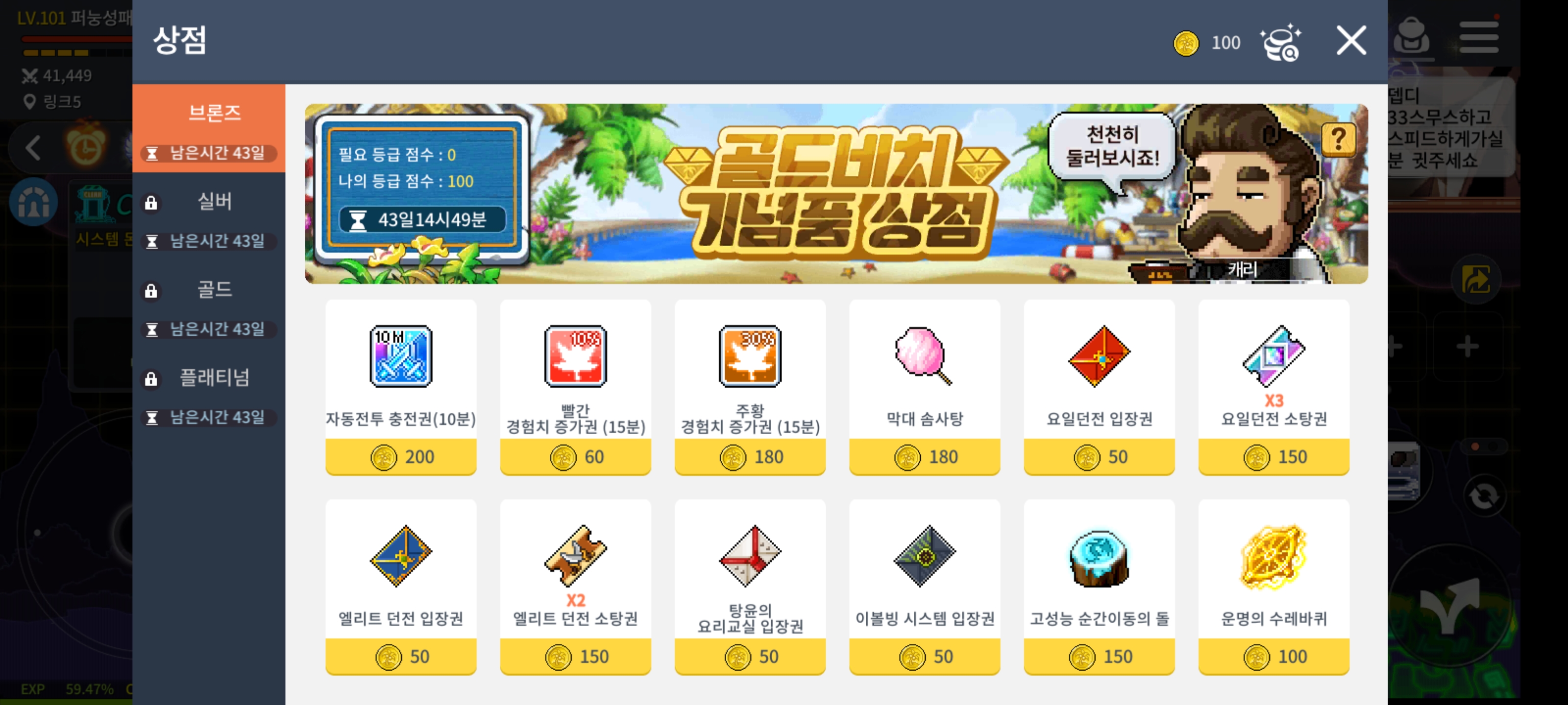 먼저 브론즈 등급을 알아보겠습니다. 입장권이나 경험치 증가권정도 구입하실 수 있습니다.