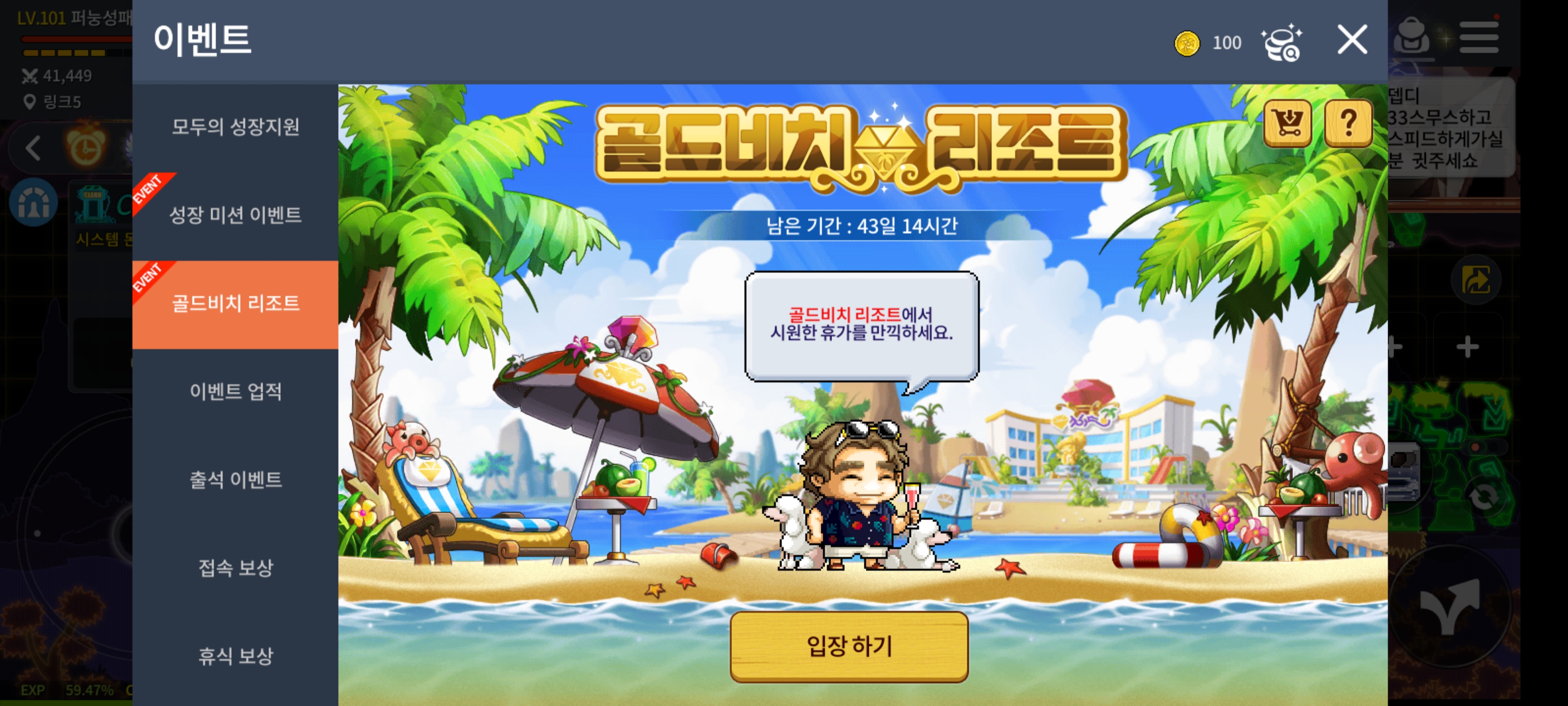 현재 진행중인 메인이벤트는 골드비치 리조트라는 이벤트가 진행되고 있습니다.