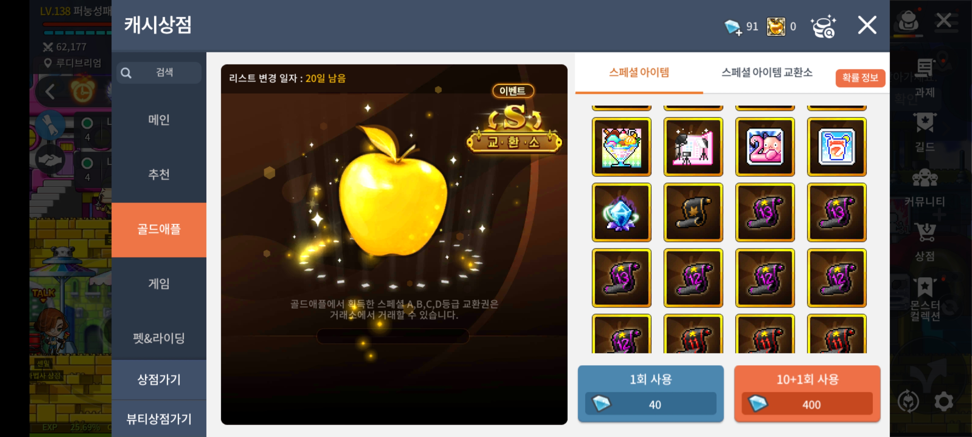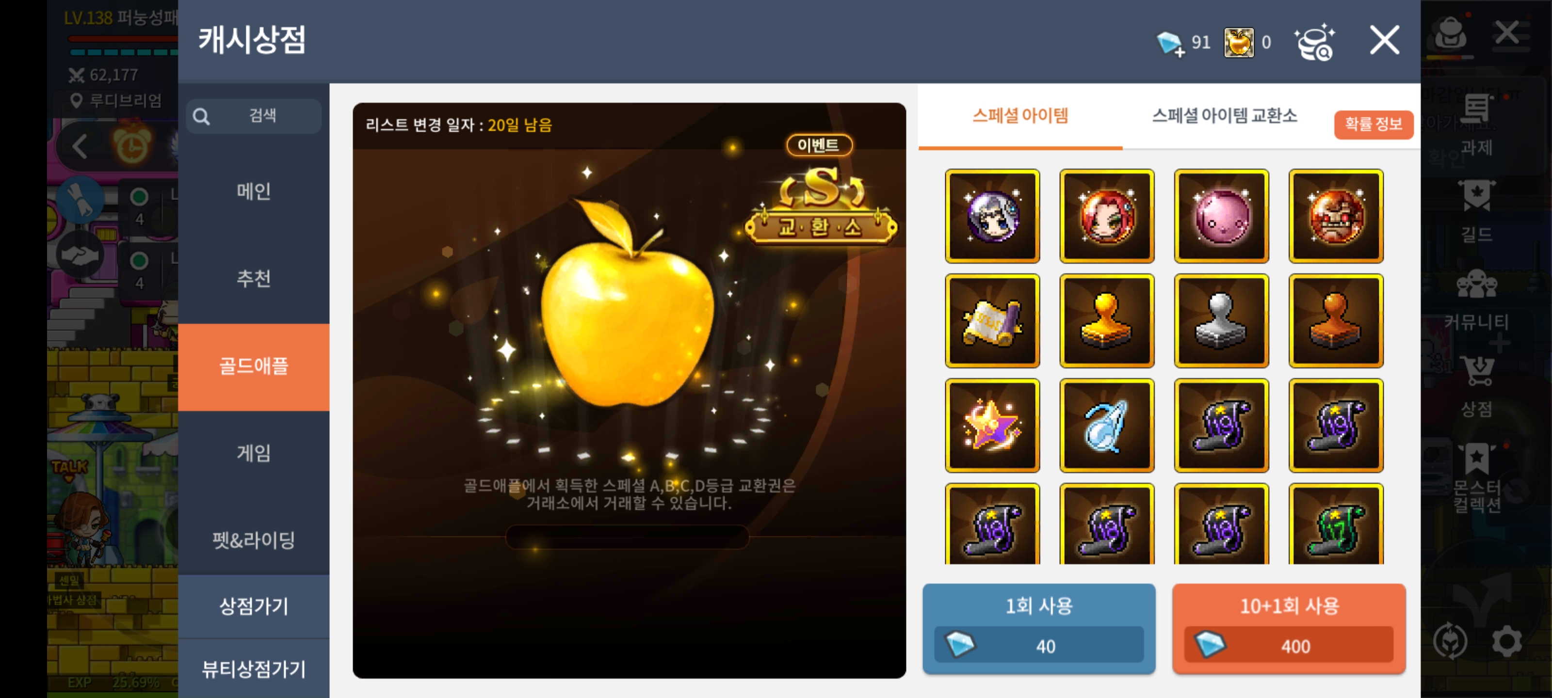 오늘은 메이플스토리m 골드애플 스페셜 아이템 리스트가 변경되서
