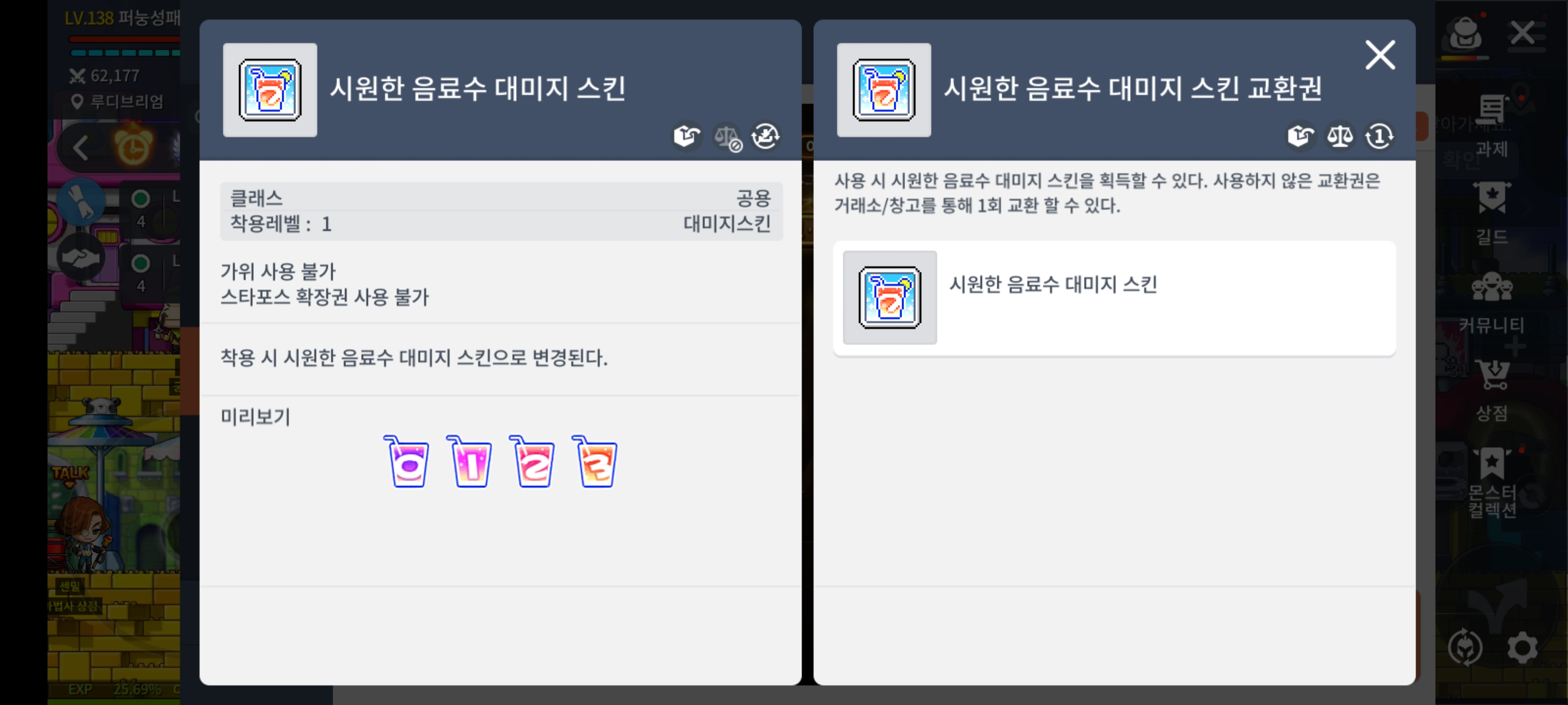새롭게 추가된 시원한 음료수 대미지 스킨 입니다.