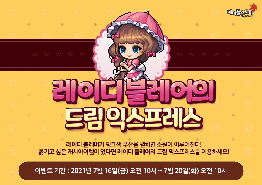 안녕하세요 농어촌 비행기입니다. 오늘은 메이플스토리 레이디 블레어의 드림 익스프레스를 알아보겠습니다.
