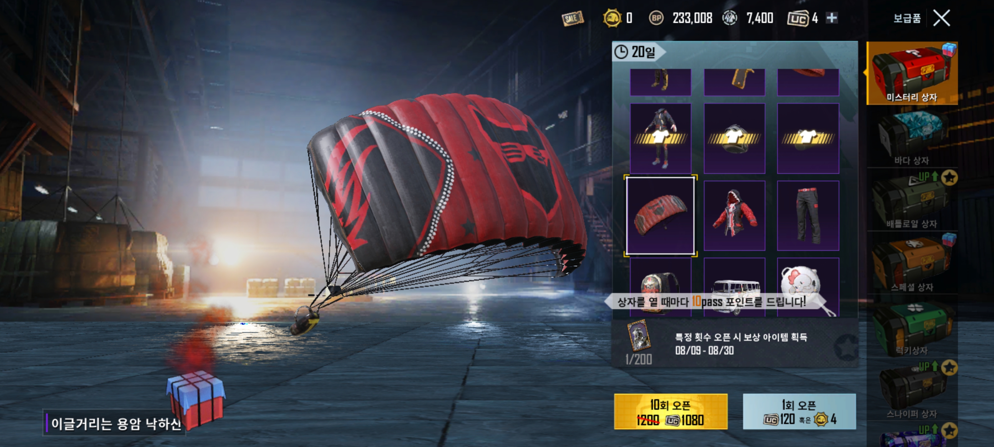 안녕하세요 농어촌비행기입니다. 오늘은 모바일배그 미스터리상자 업데이트가 되었습니다.