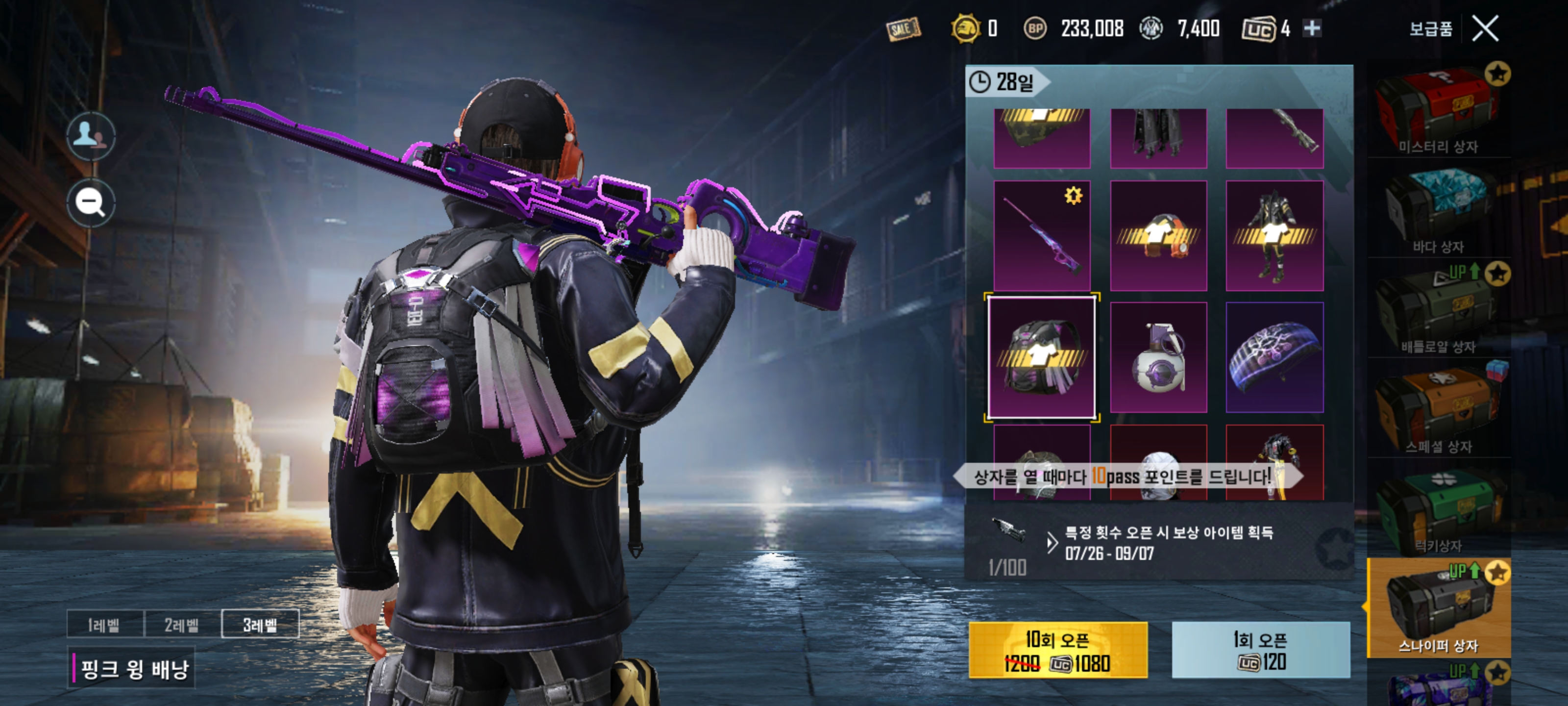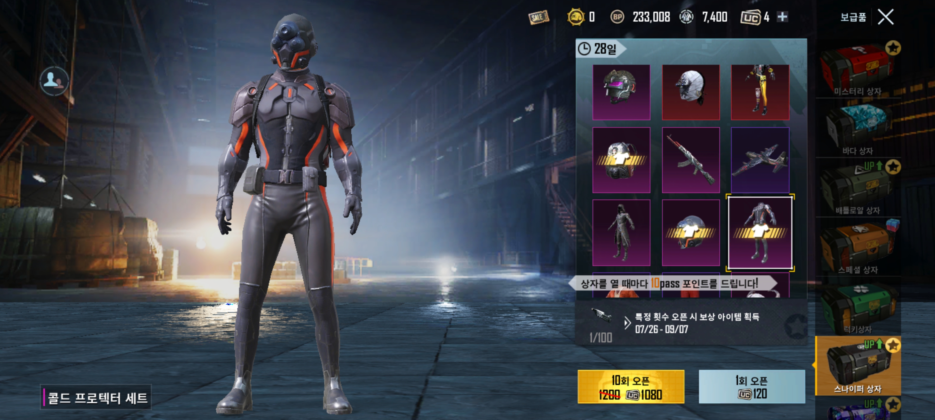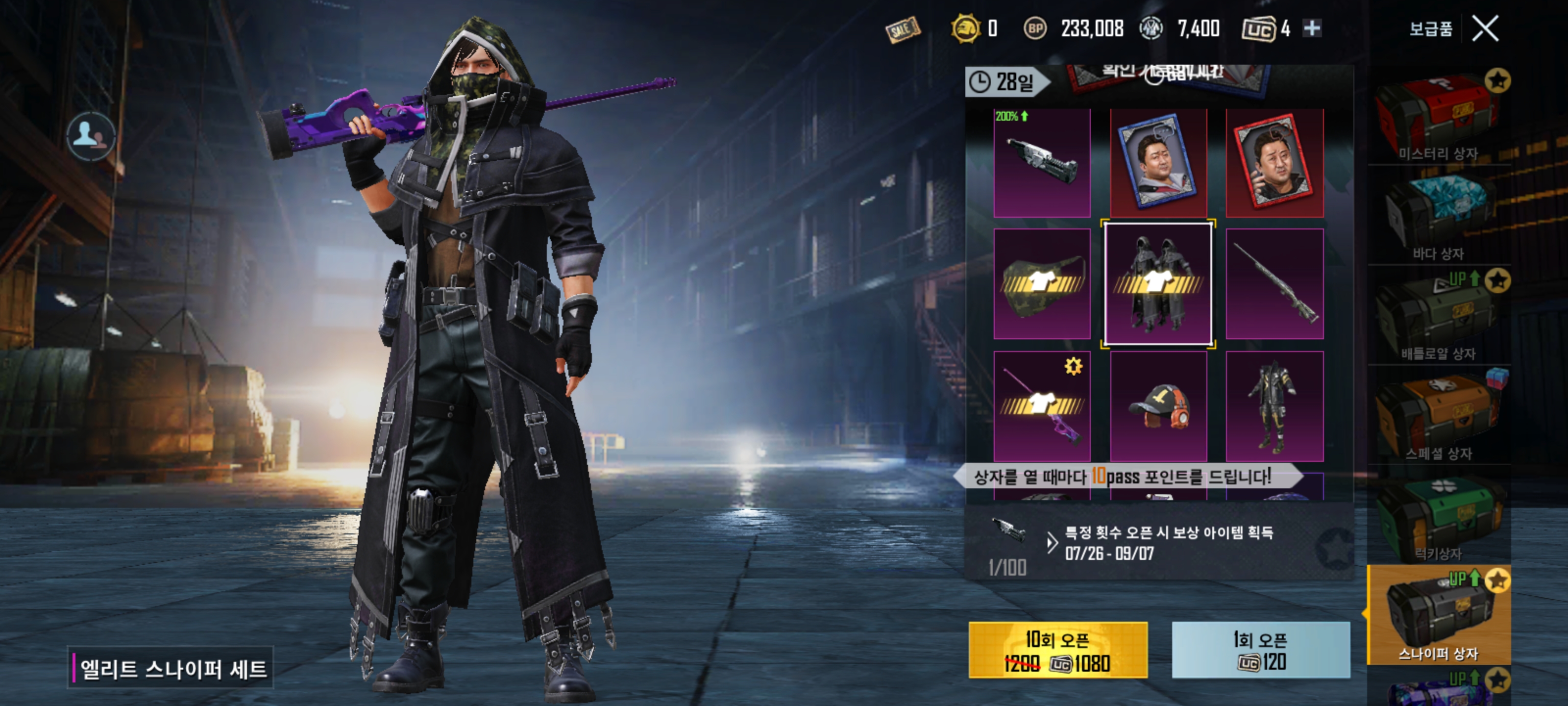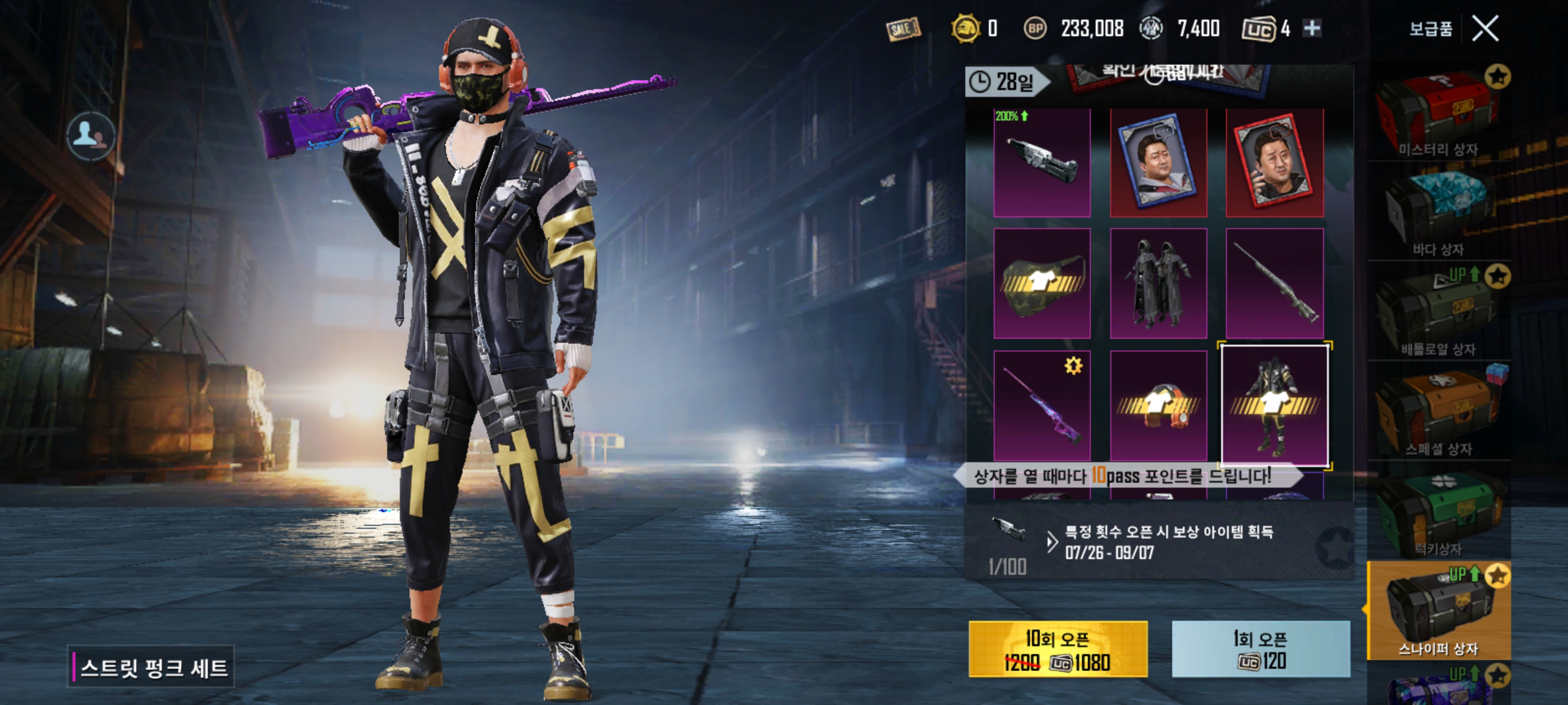 새롭게 출시한 스나이퍼 상자입니다. 코디가 하나하나 다 펑크느낌이라서 저는 다 괜찮아보였습니다.