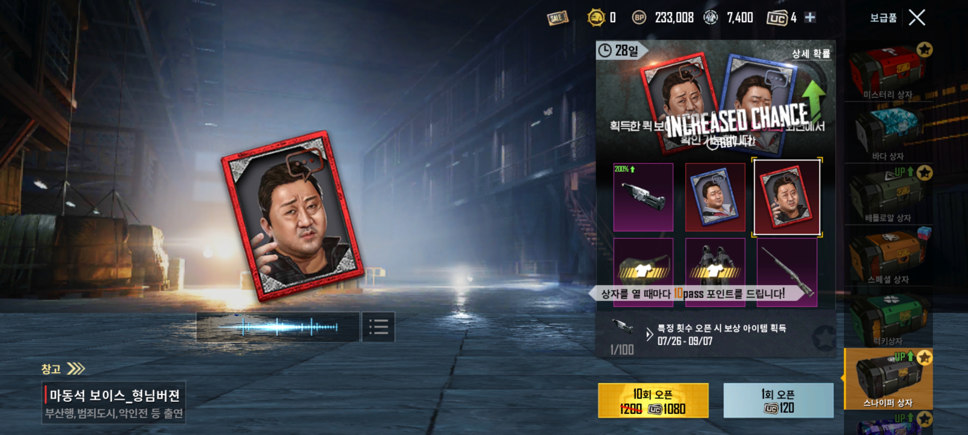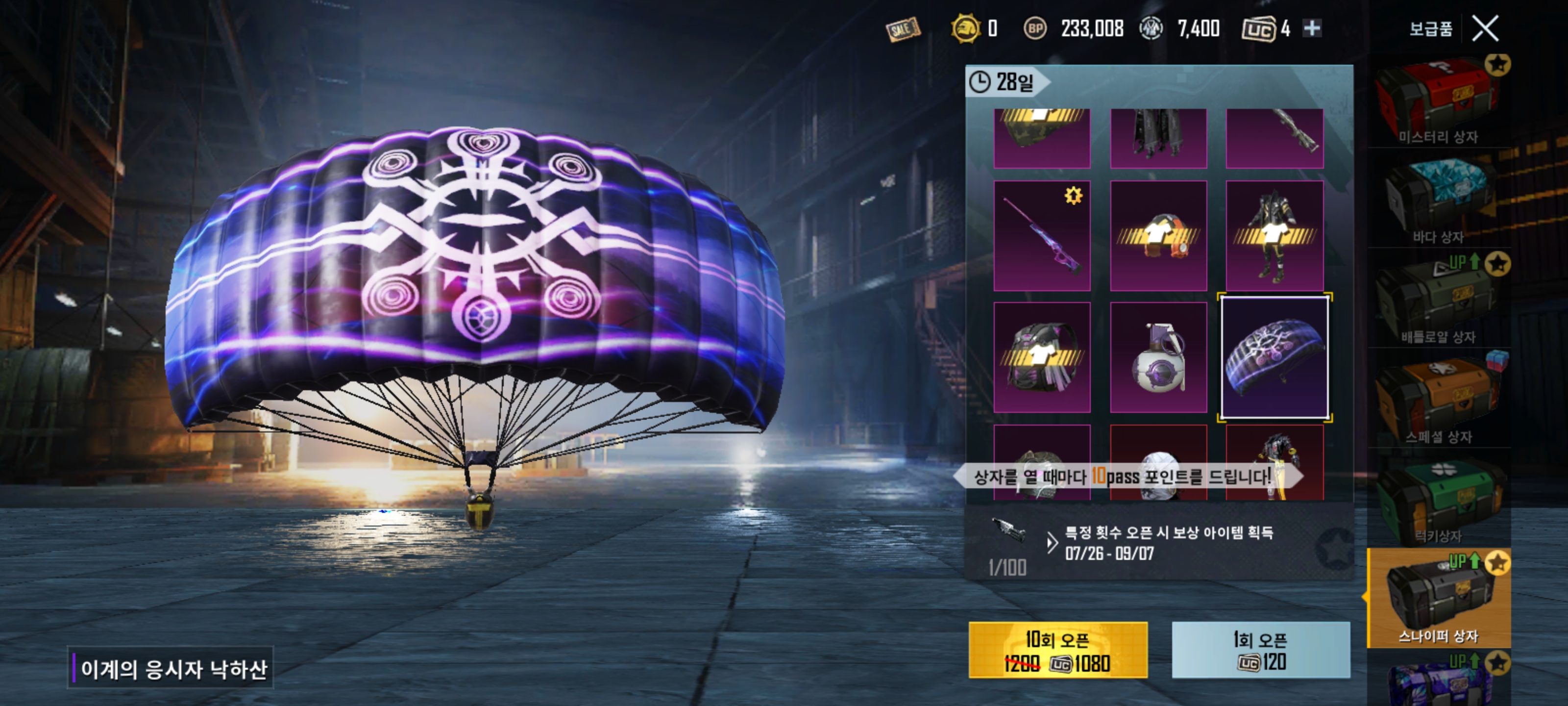 가격은 1회 오픈시 120UC 10회 오픈시 1080UC 입니다.