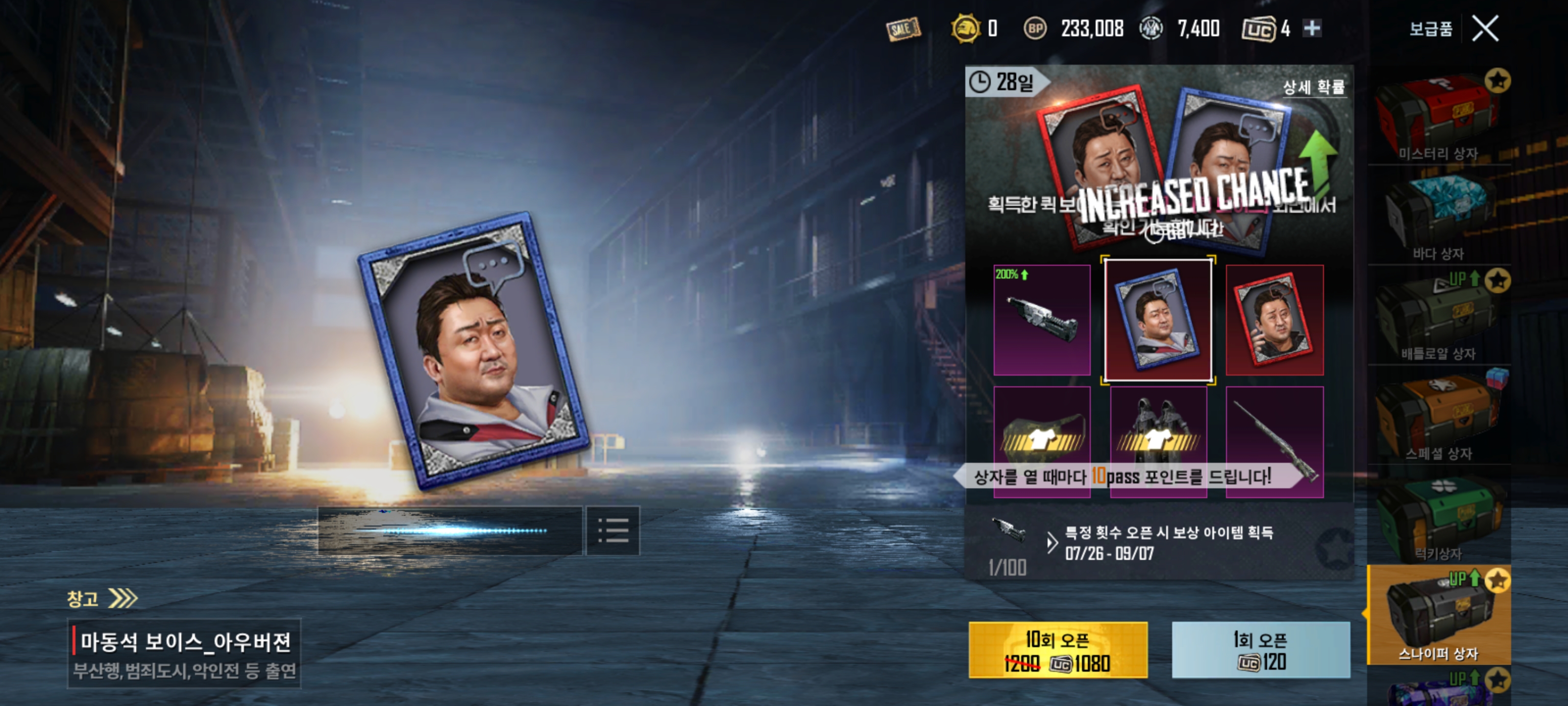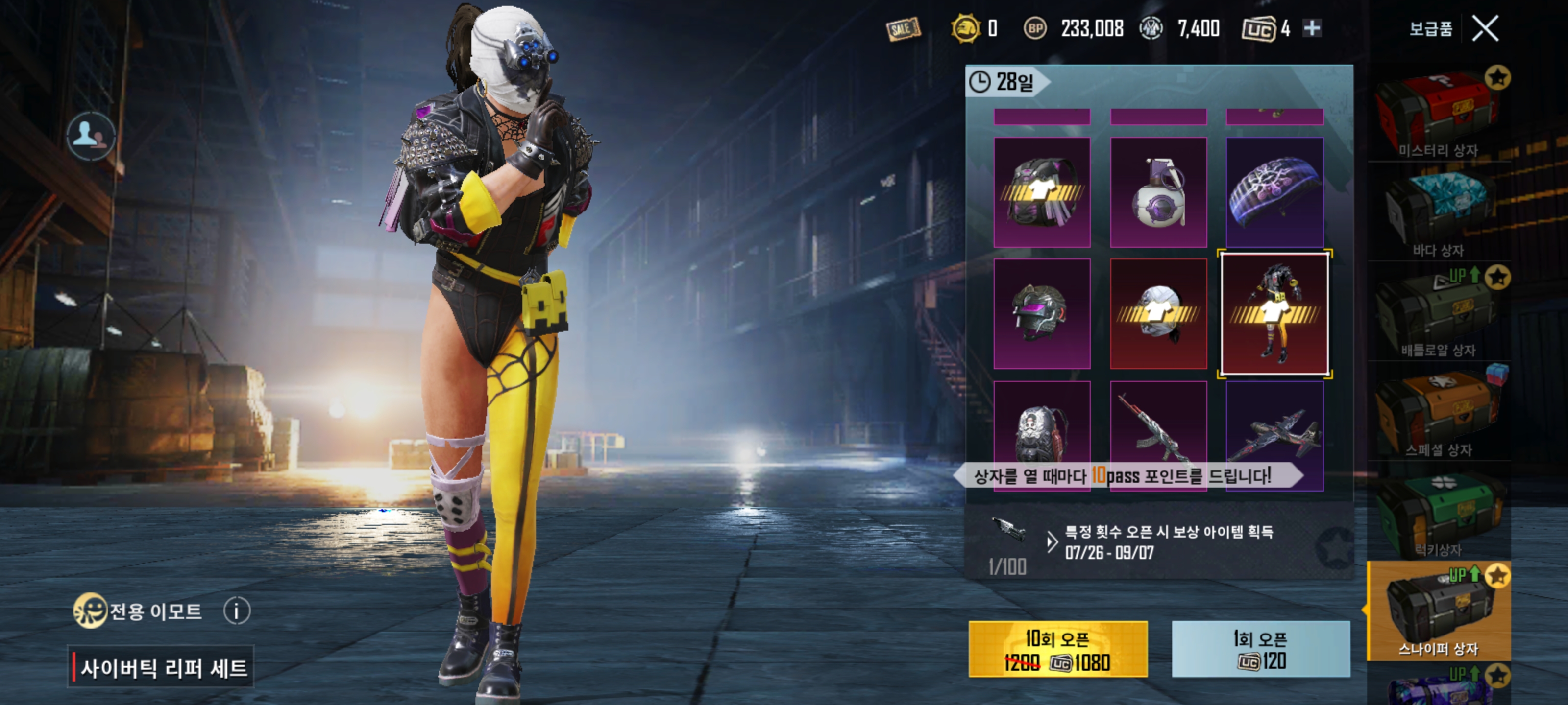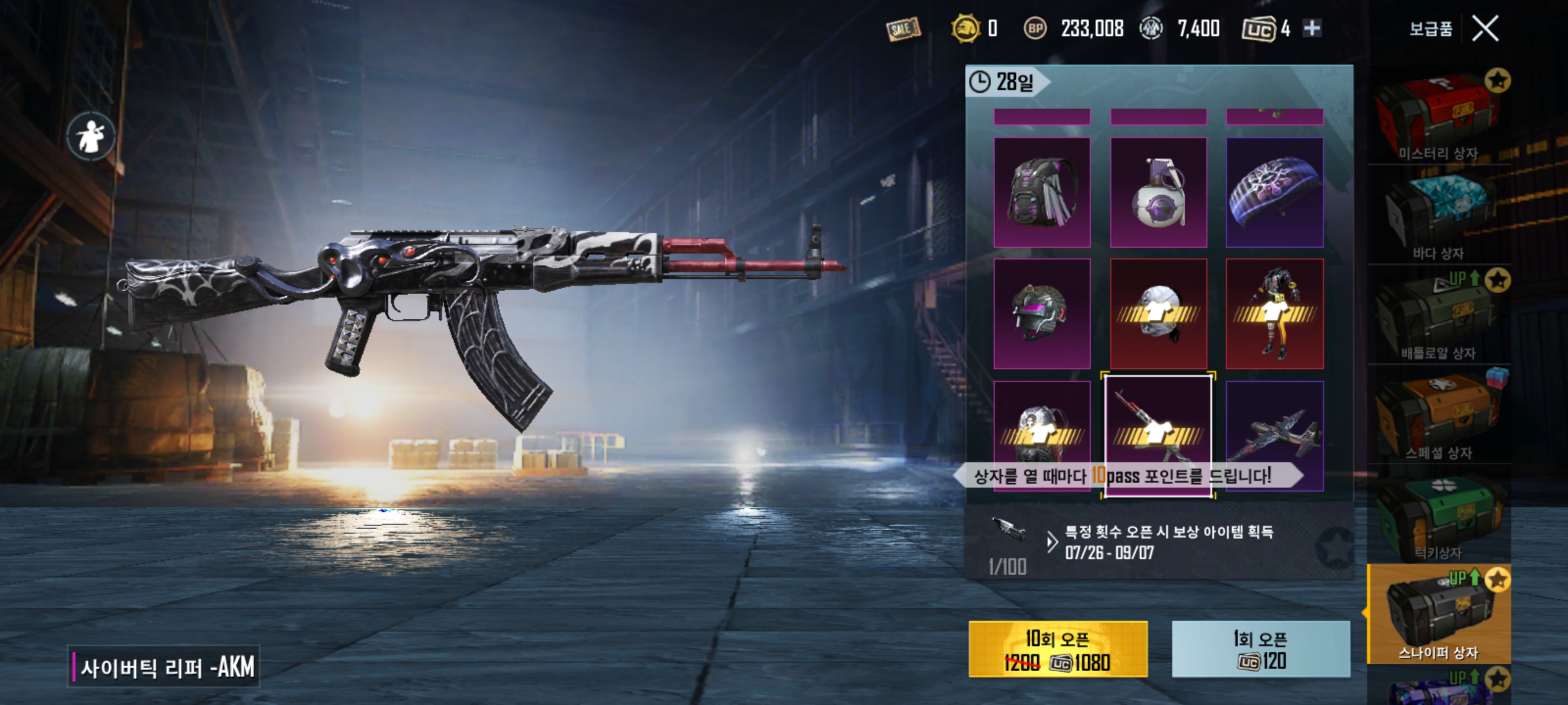 가격은 1회 오픈시 120UC 10회 오픈시 1080UC 입니다.