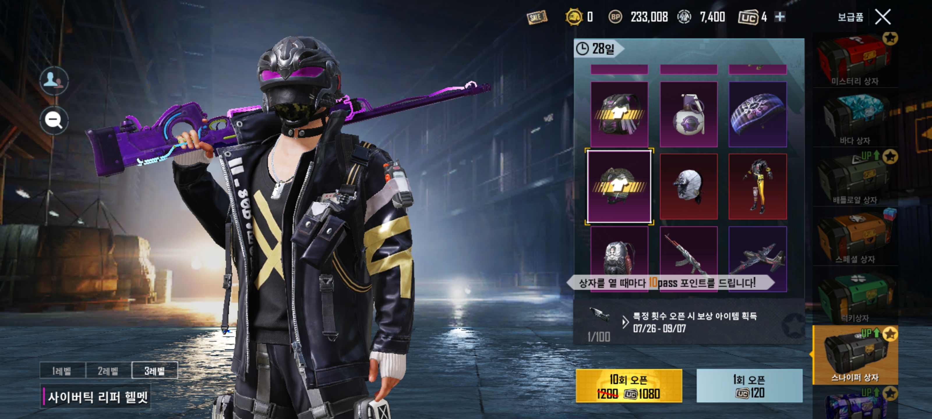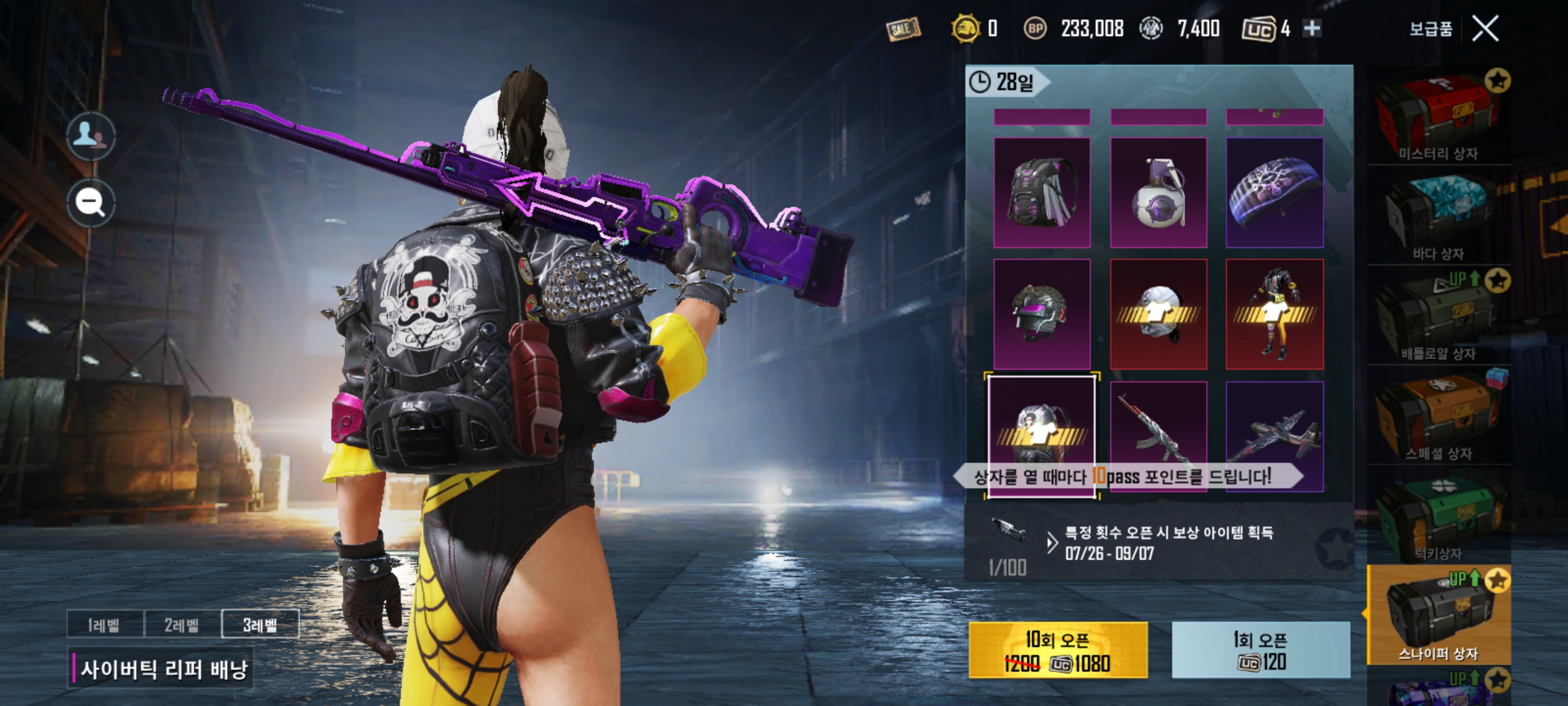 새롭게 출시한 스나이퍼 상자입니다. 코디가 하나하나 다 펑크느낌이라서 저는 다 괜찮아보였습니다.