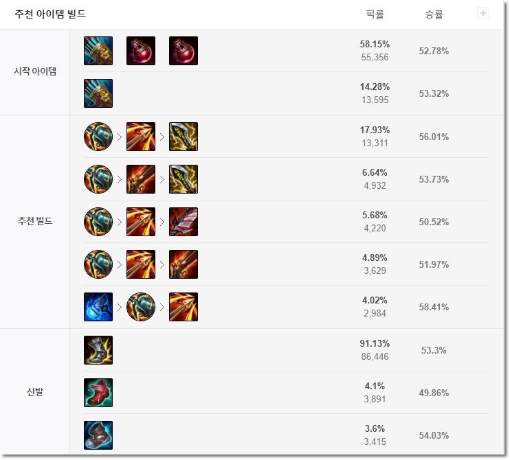 징크스의 아이템 빌드를 알아보겠습니다. 징크스의 한타력이 발휘되려면 패시브가 무조건 발동되어야 하고, QWER을 적시적소에 정확하게 쓰는것에는 숙련도가 필요하다. 특히 적시적소에 무기 변환을 할줄 알아야한다. 사거리 감각이 굉장히 중요하다. 미니건으로 DPS 살리면서 딜하다가, 상대가 도망가기 시작하거나 적 딜러진에 딸피가 발견되면 무빙하면서 바로 로켓런쳐로 정확하게 막타를 치고 패시브를 발동시키는게 매우 중요하다.