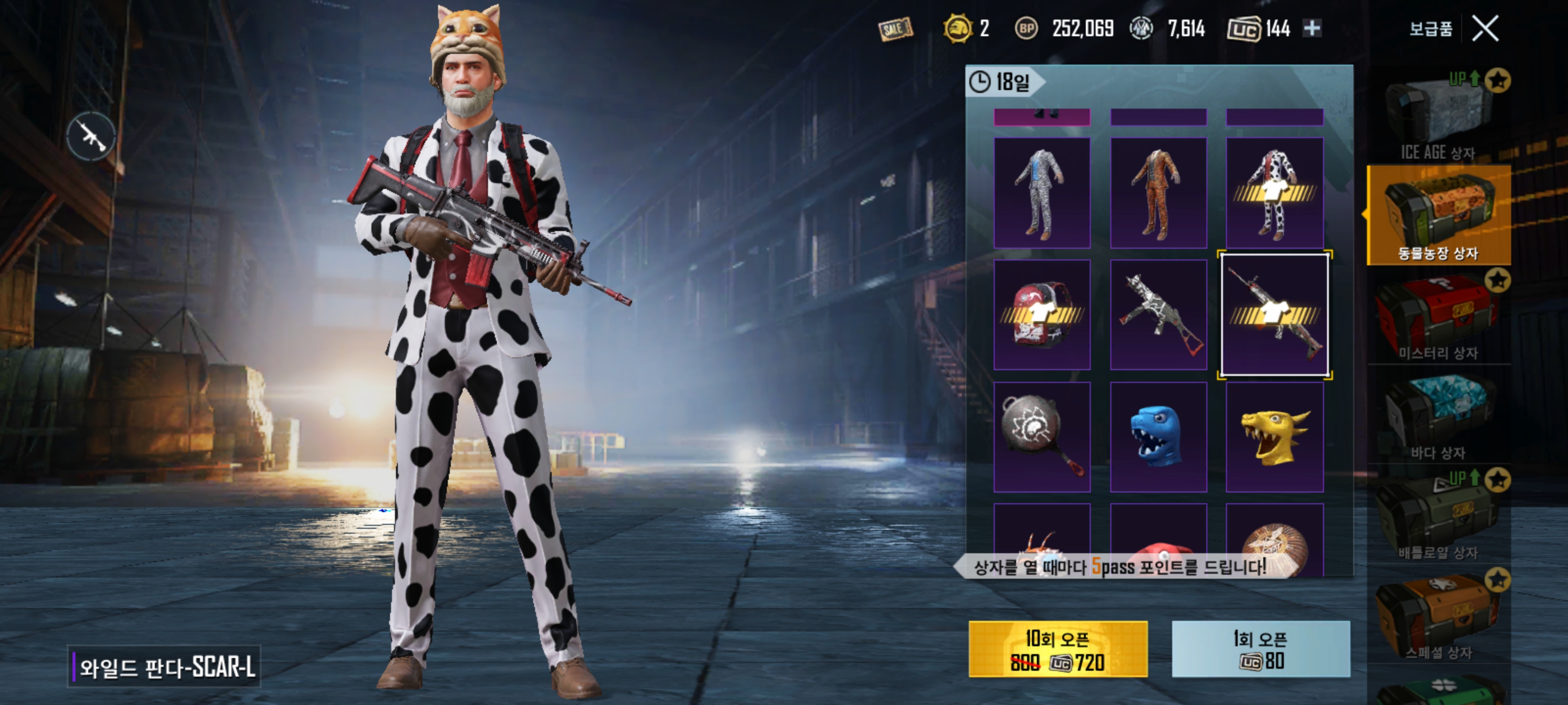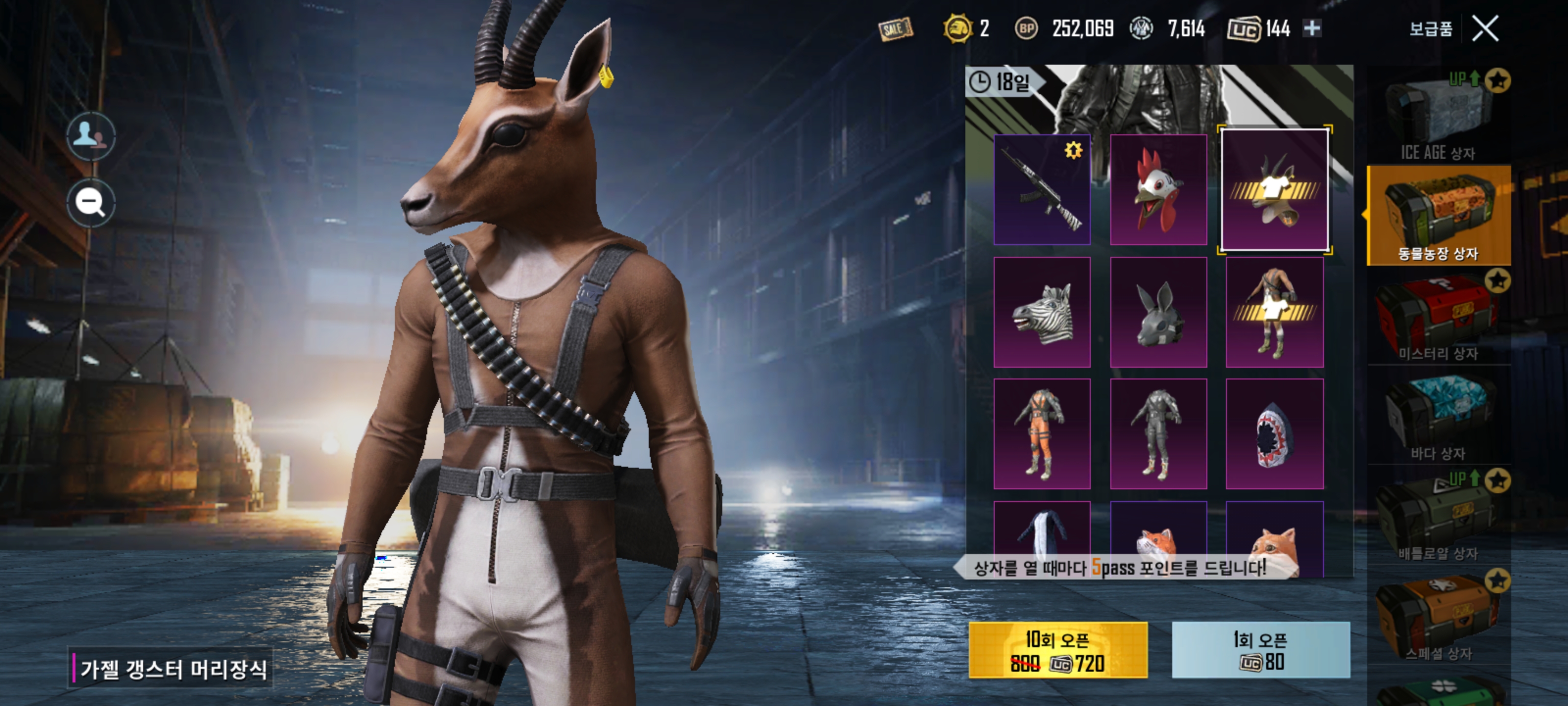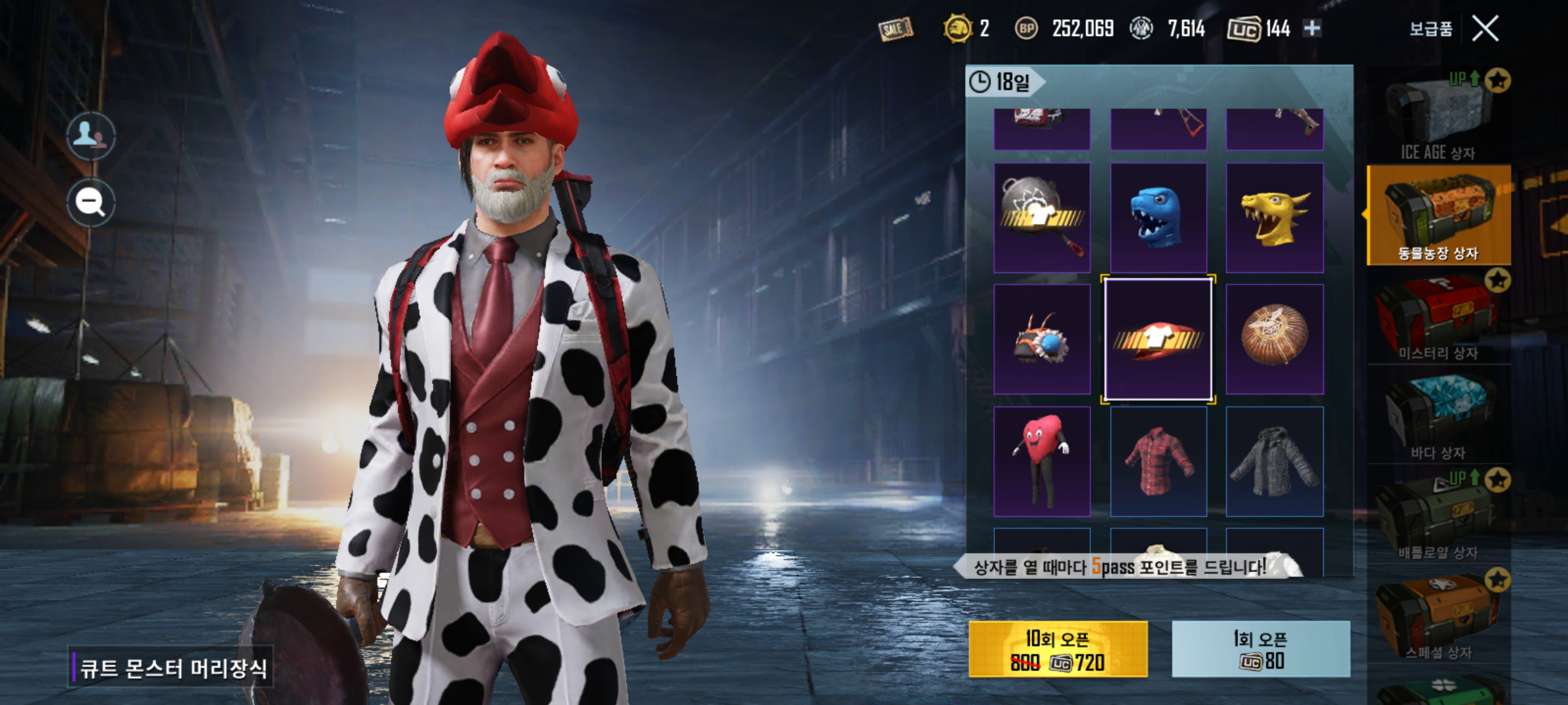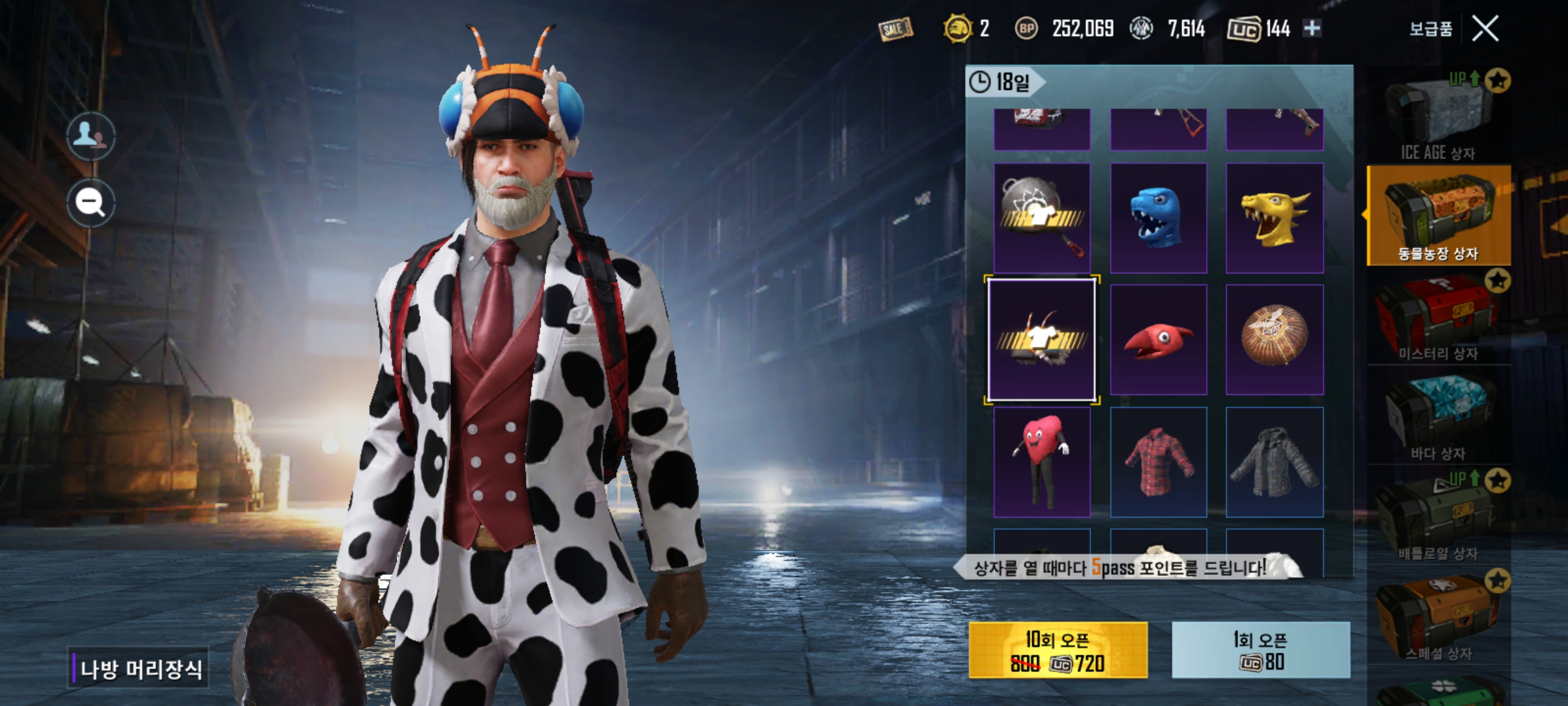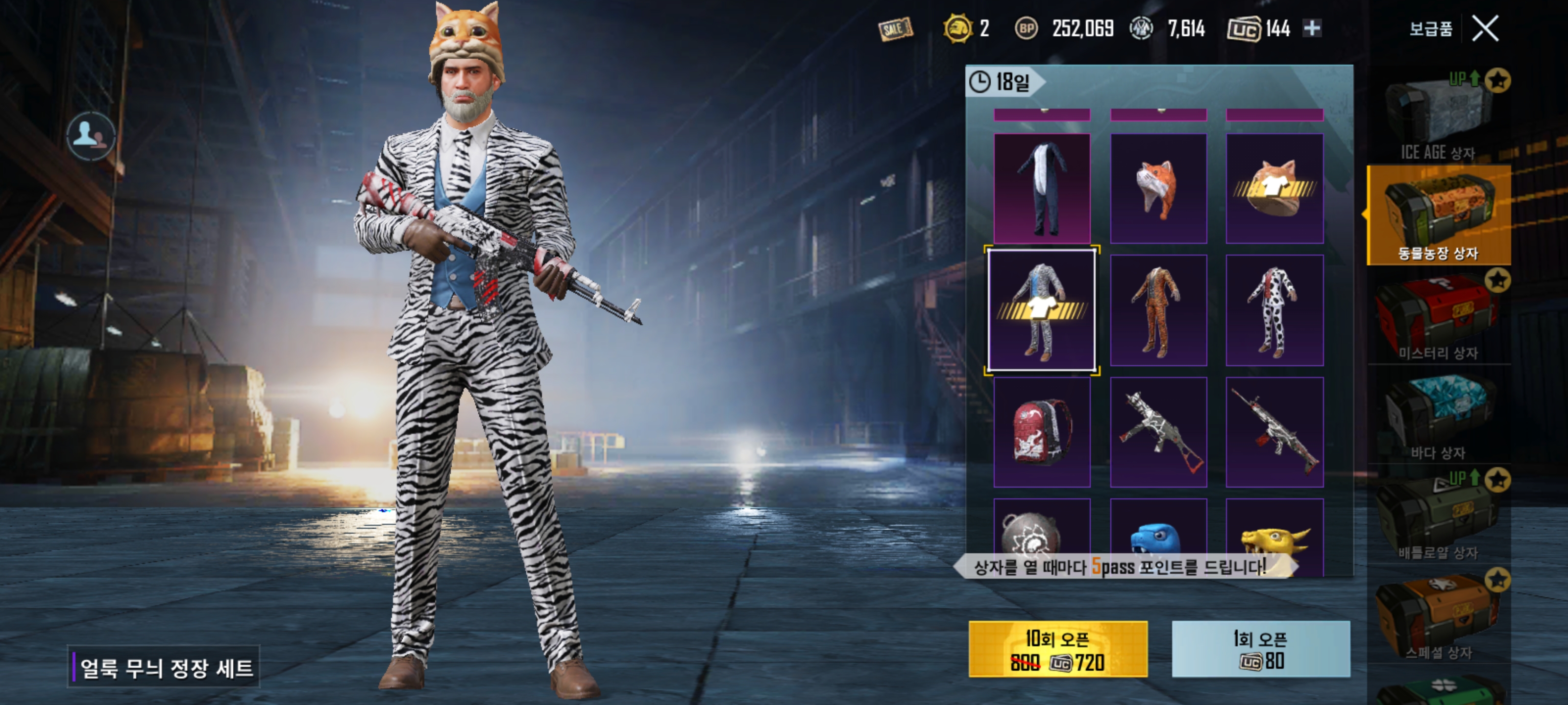 동물농장 상자는 1회 오픈시 80UC 로 10회 오픈시 720UC 입니다.