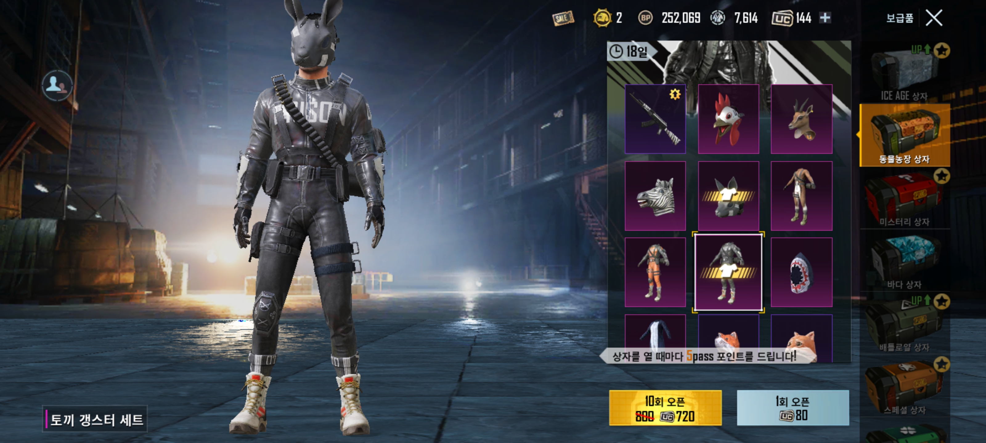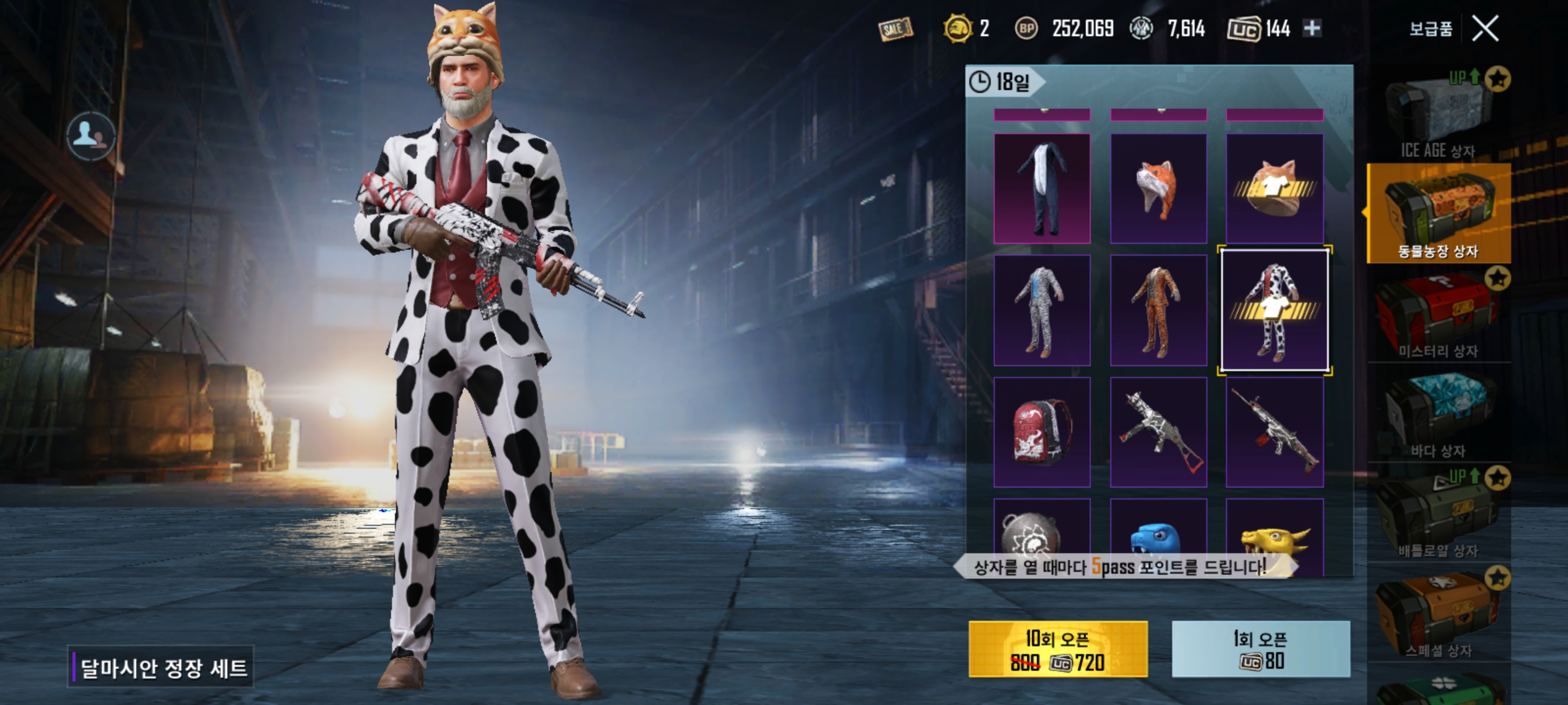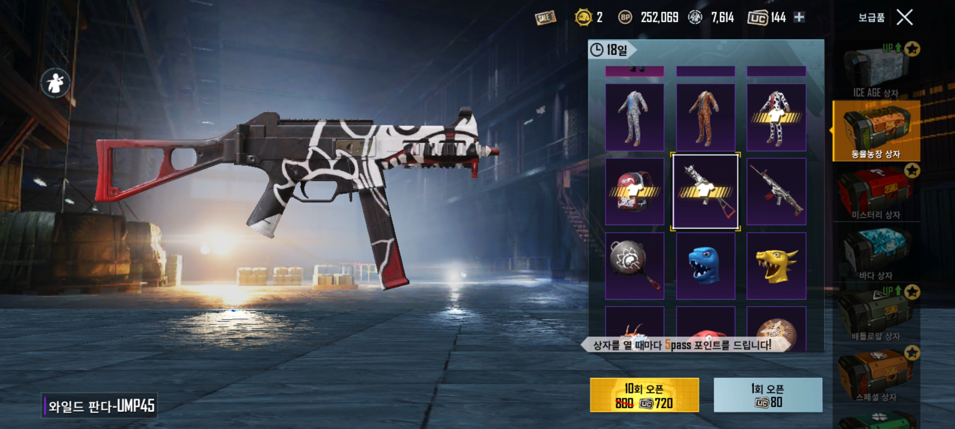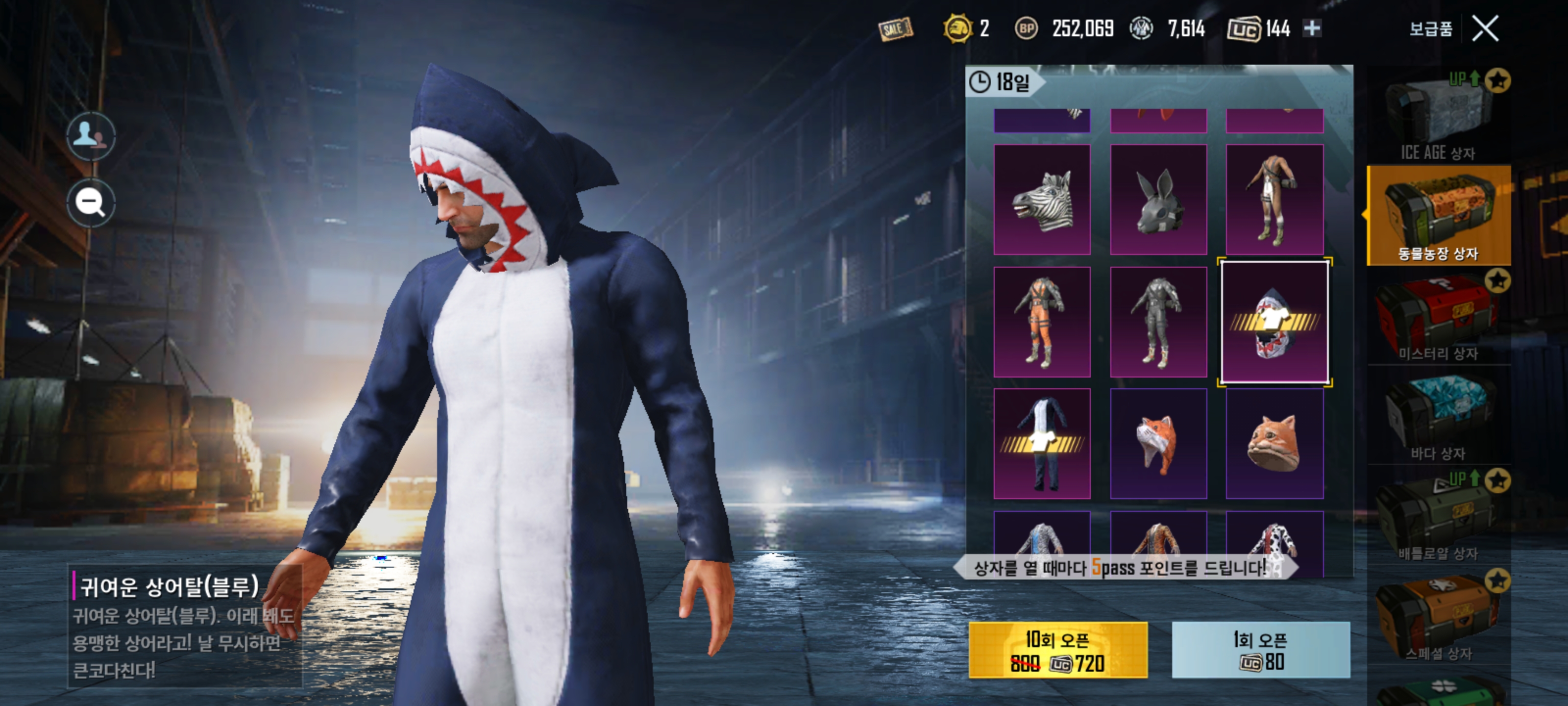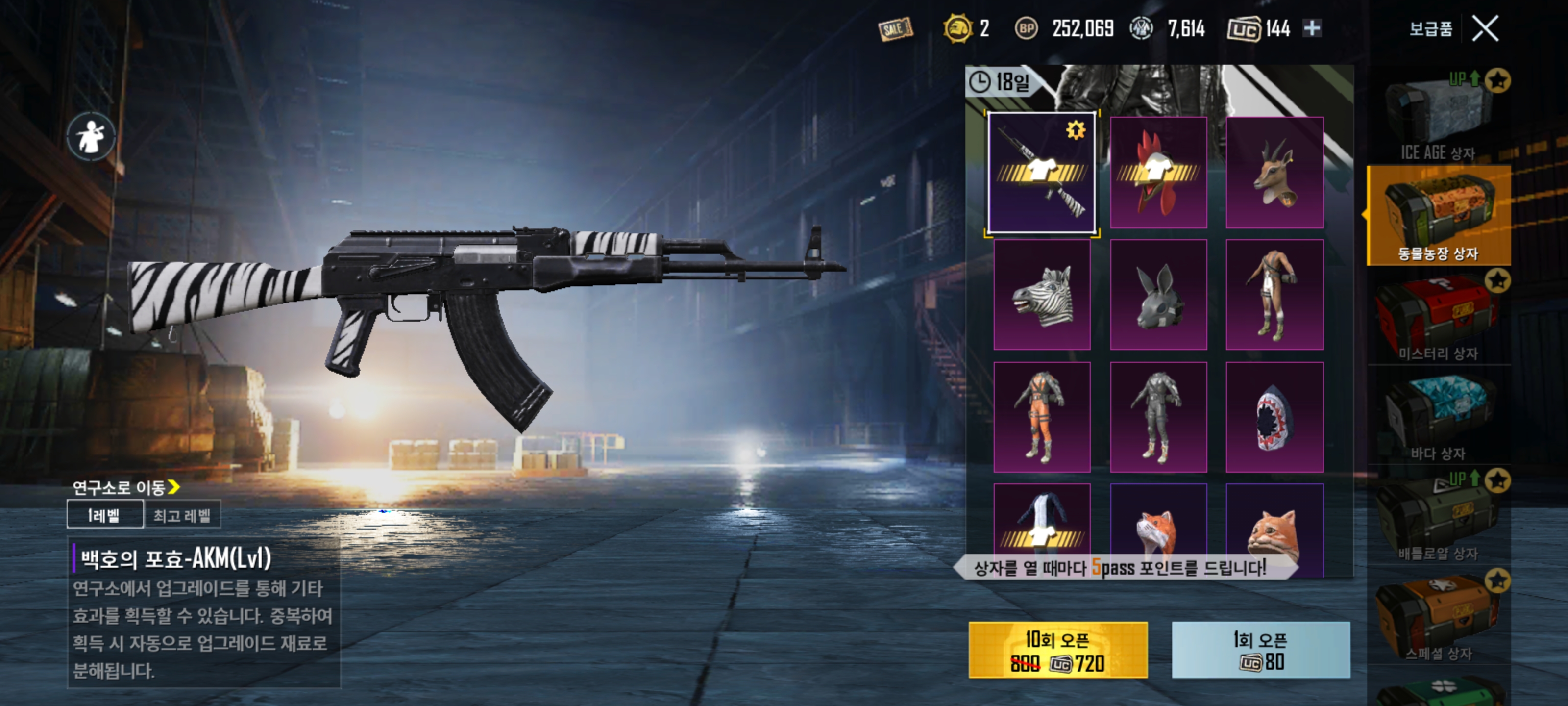 동물농장 상자는 1회 오픈시 80UC 로 10회 오픈시 720UC 입니다.