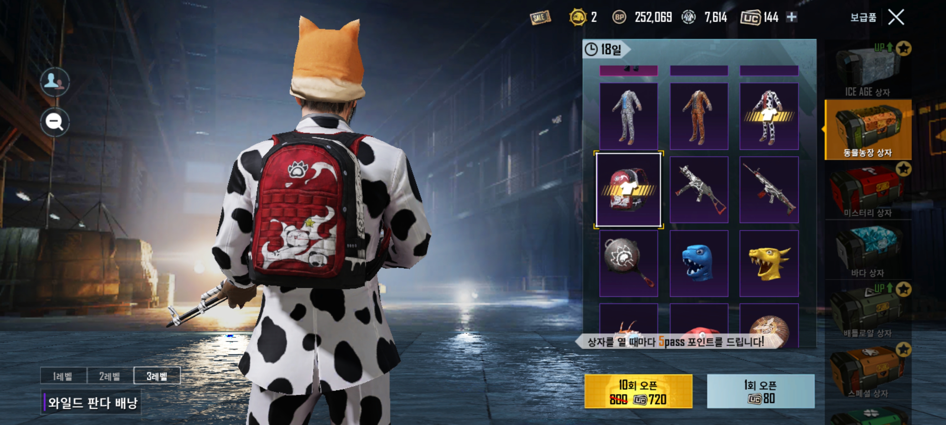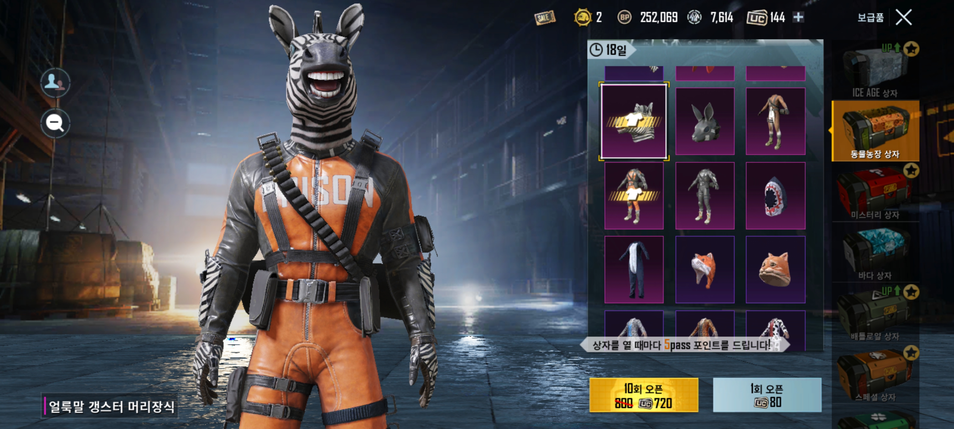 동물농장 상자는 1회 오픈시 80UC 로 10회 오픈시 720UC 입니다.