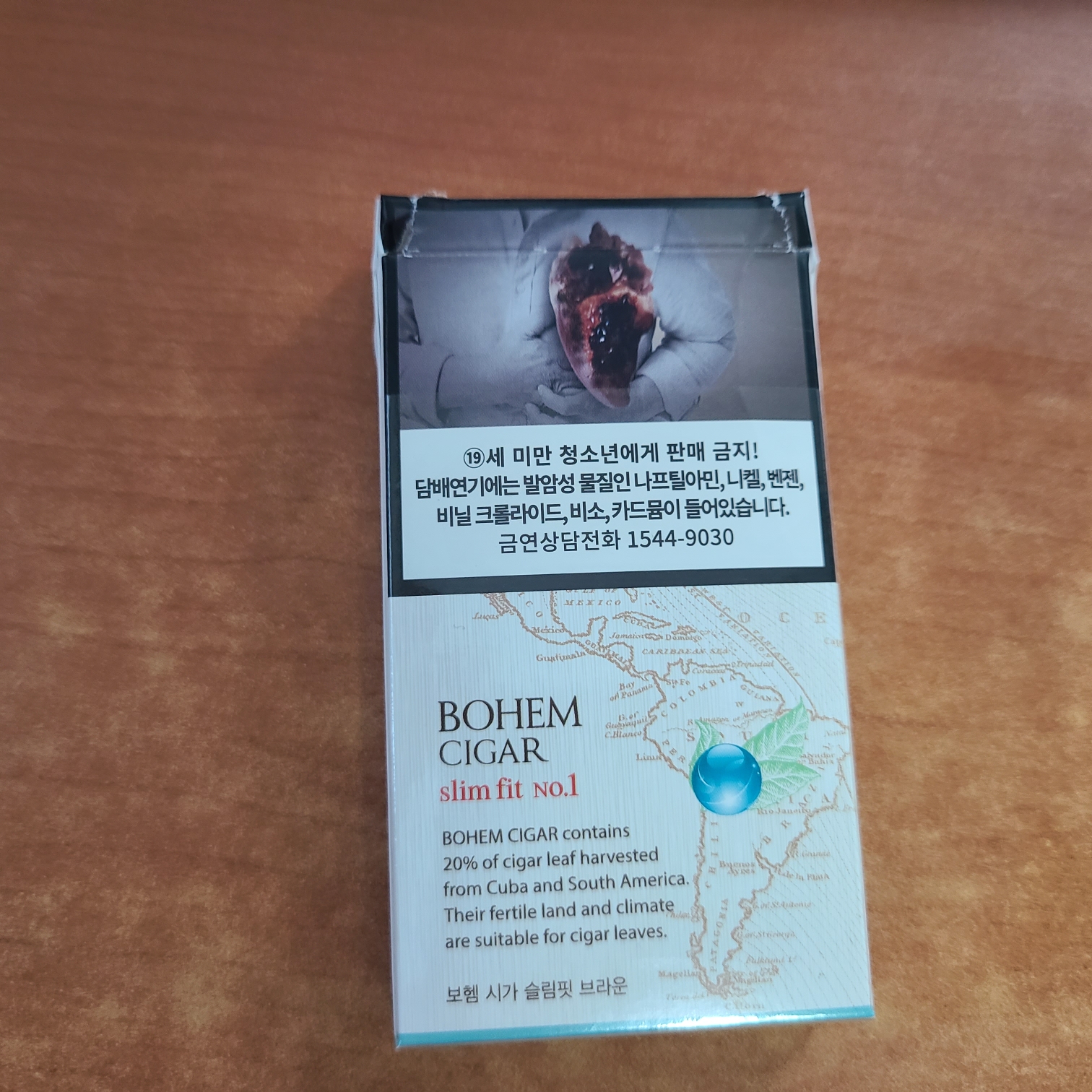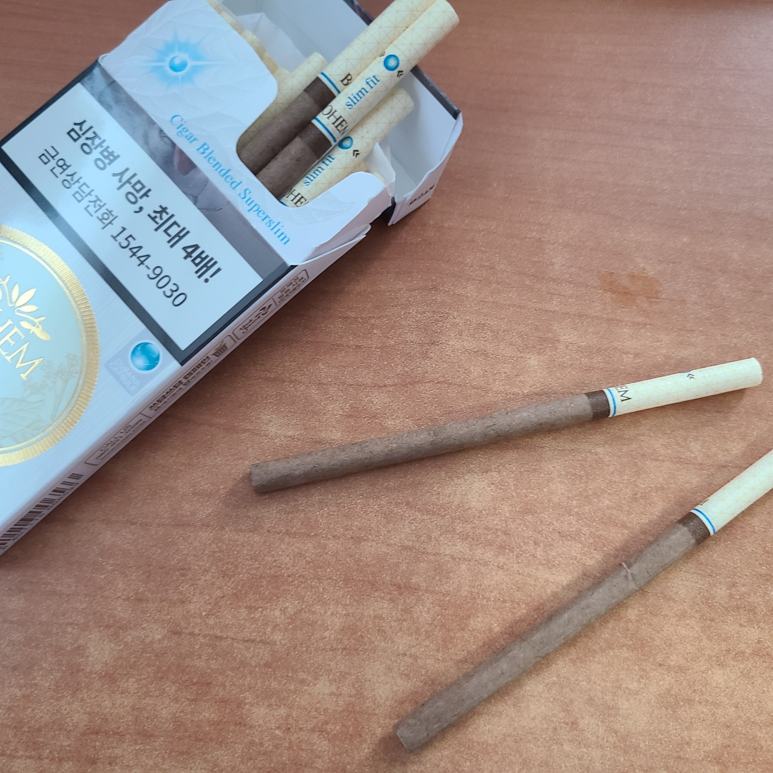 오늘 리뷰할 담배는 보헴시가 슬림핏 브라운입니다. 음 깔때 잘못까서 꽉이 살짝 찢어졌습니다.