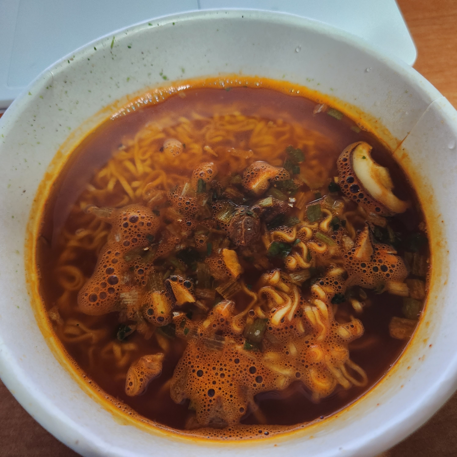 맛은 신라면 비슷한 맛이나고, 좀 깔끔한 맛이 났습니다. 인스턴트가 아닌 느낌이랄까.