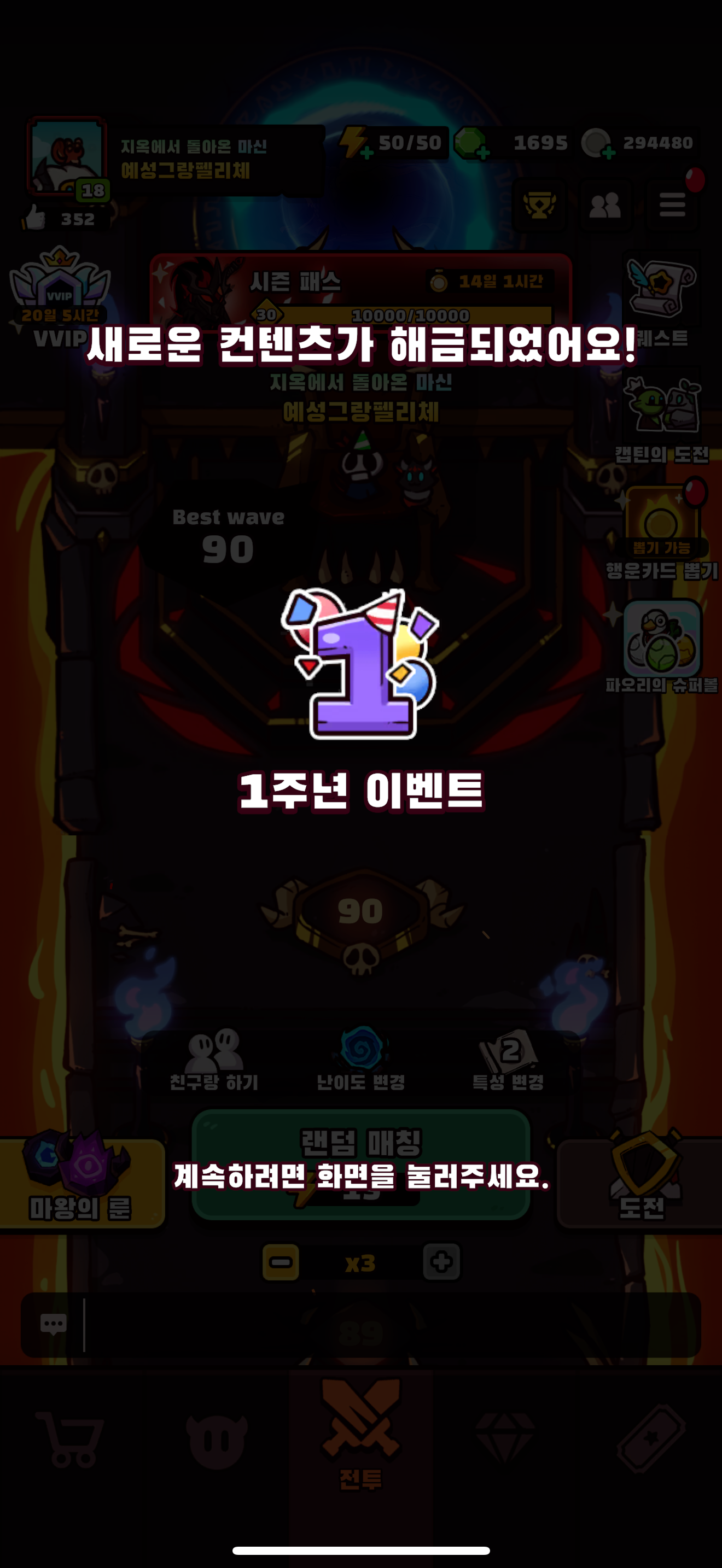 안녕하세요 카산입니다. 제가 요즘 자주 플레이하고 있는 게임 협동타워디펜스가 1주년이 되었다네요.